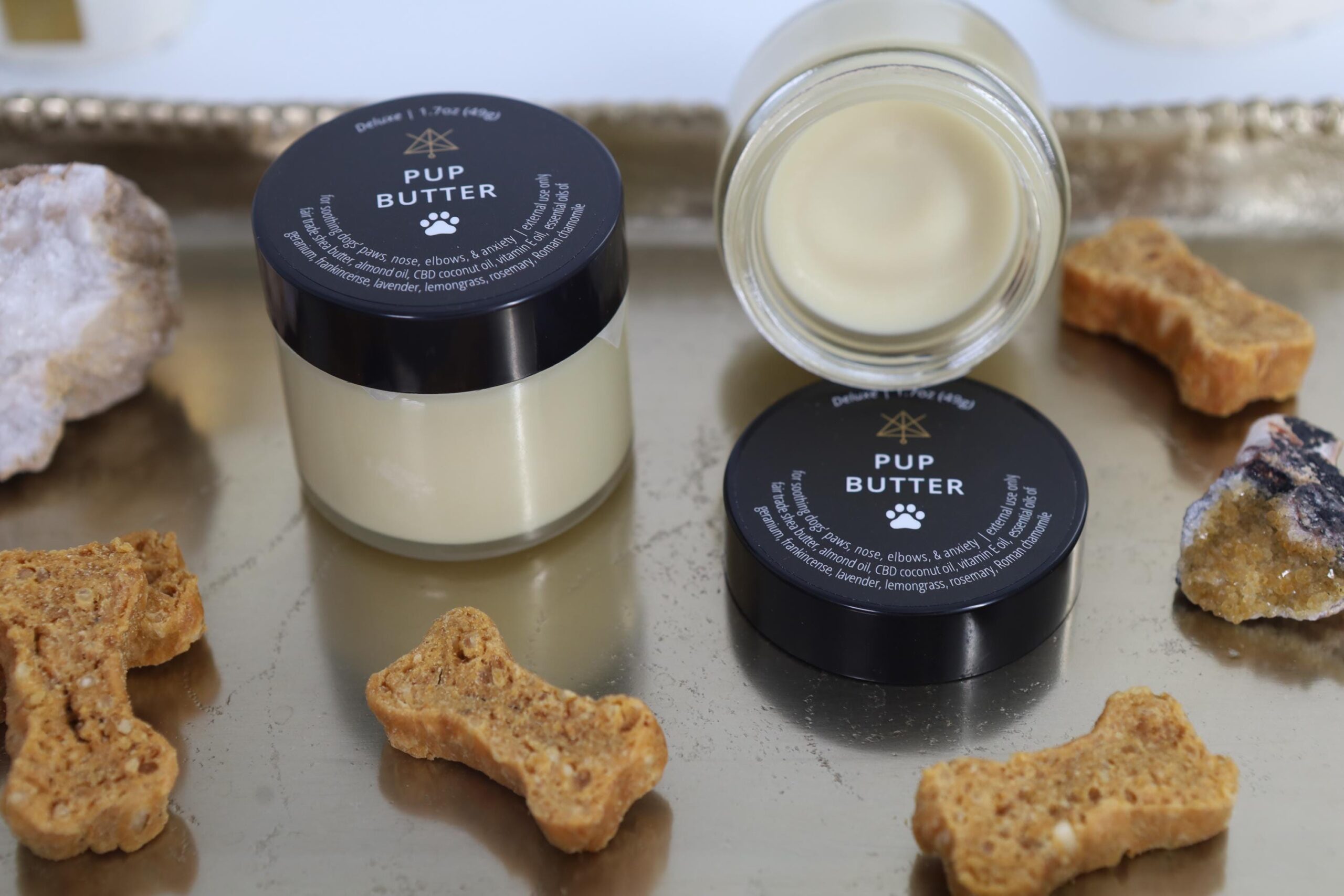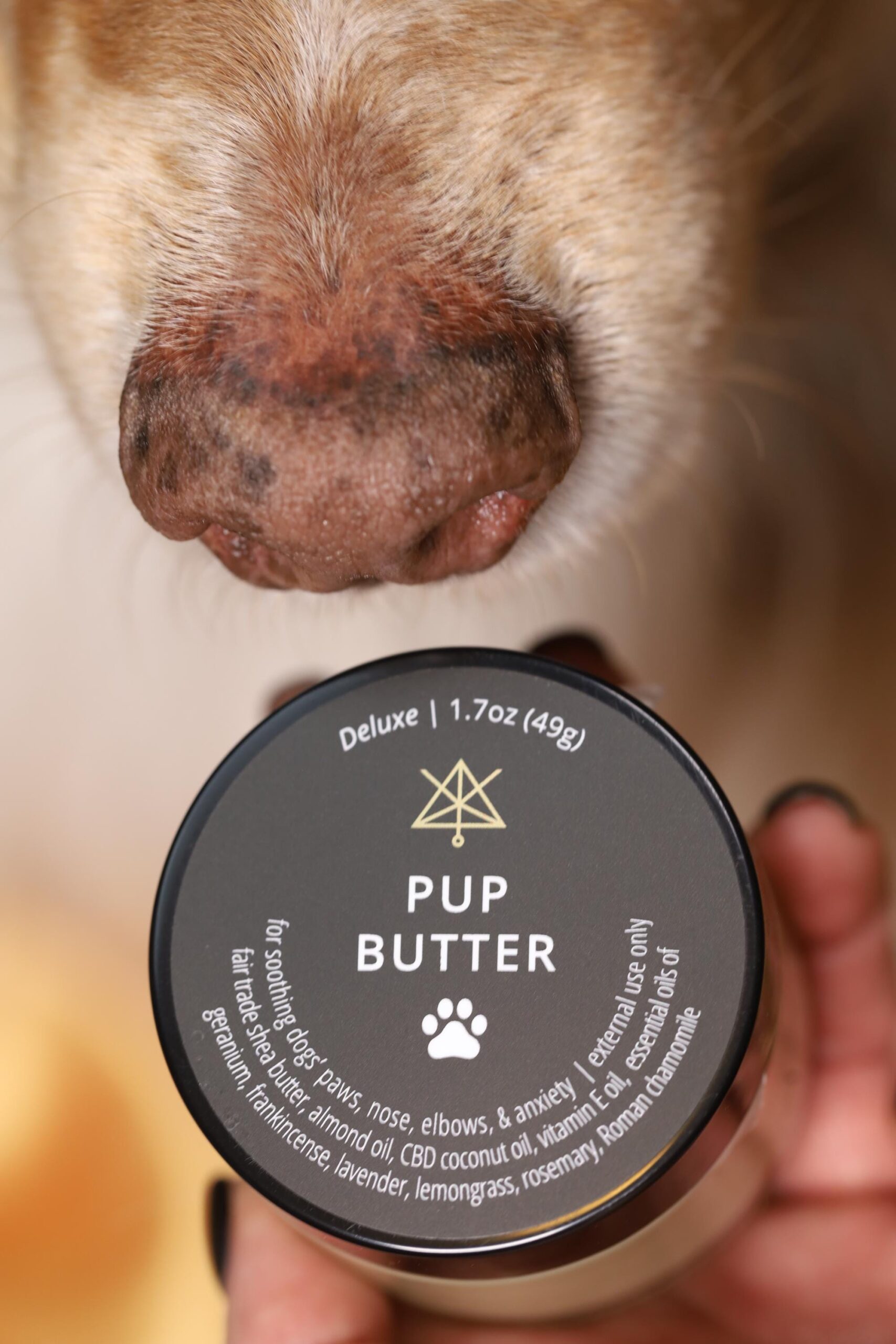 With clean hands apply me to your pup’s nose, paws &/or elbows. Your pup will most likely want to lick me, and that is ok. To ensure I soak in as deeply as I can, distract your pup with treats or toys after application. And please keep me out of direct sunlight, I melt easily.