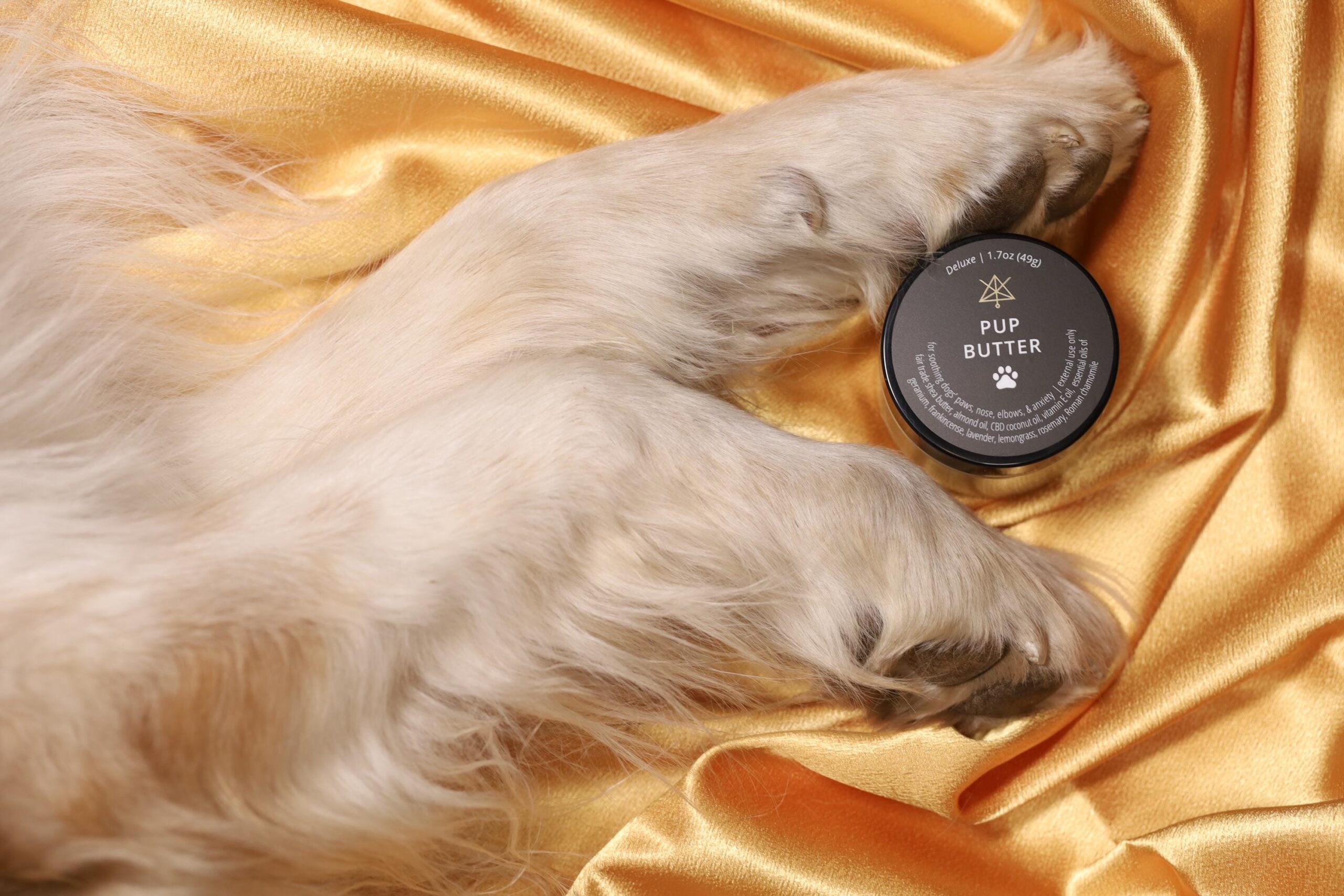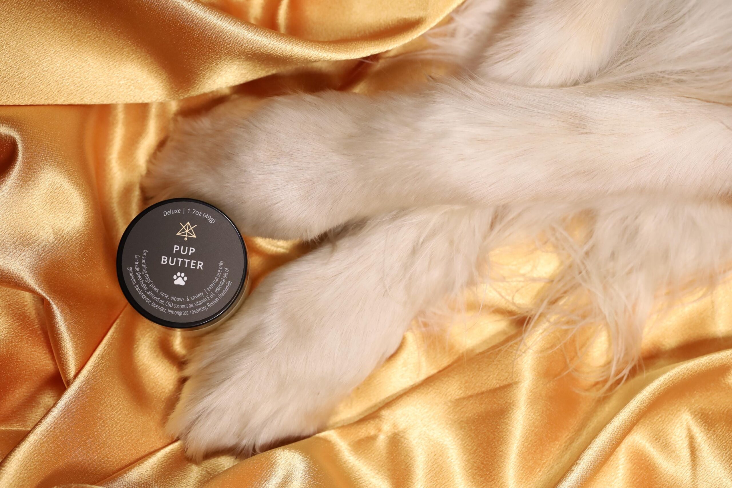 I am moisturizer for your dogs’ paws, nose and elbows. During thunder & lightning storms I can also help keep your pup calm. I help repair and restore the natural luster of your pup’s precious skin. I ease dry, cracking, peeling and split skin. I am gently scented, but please test me on a small area of your pup’s skin if you are unsure of allergies.